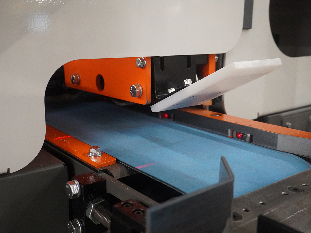 One or two operators crayon mark defects, parts transfer directly onto the smart belt equipped with a crayon camera. Parts are conveyed directly to the saw which removes defects as marked. Scrap is separated and component parts are conveyed and delivered to separate containers.
