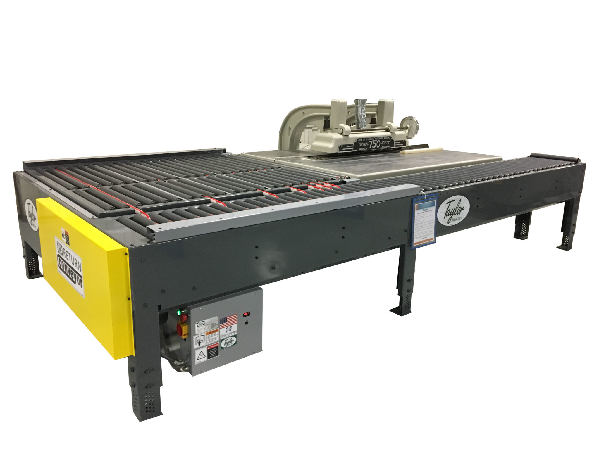 Compact and powerful, the #912A- Taylor Return Conveyor for a Straight Line Rip Saw maximizes workspace efficiency.