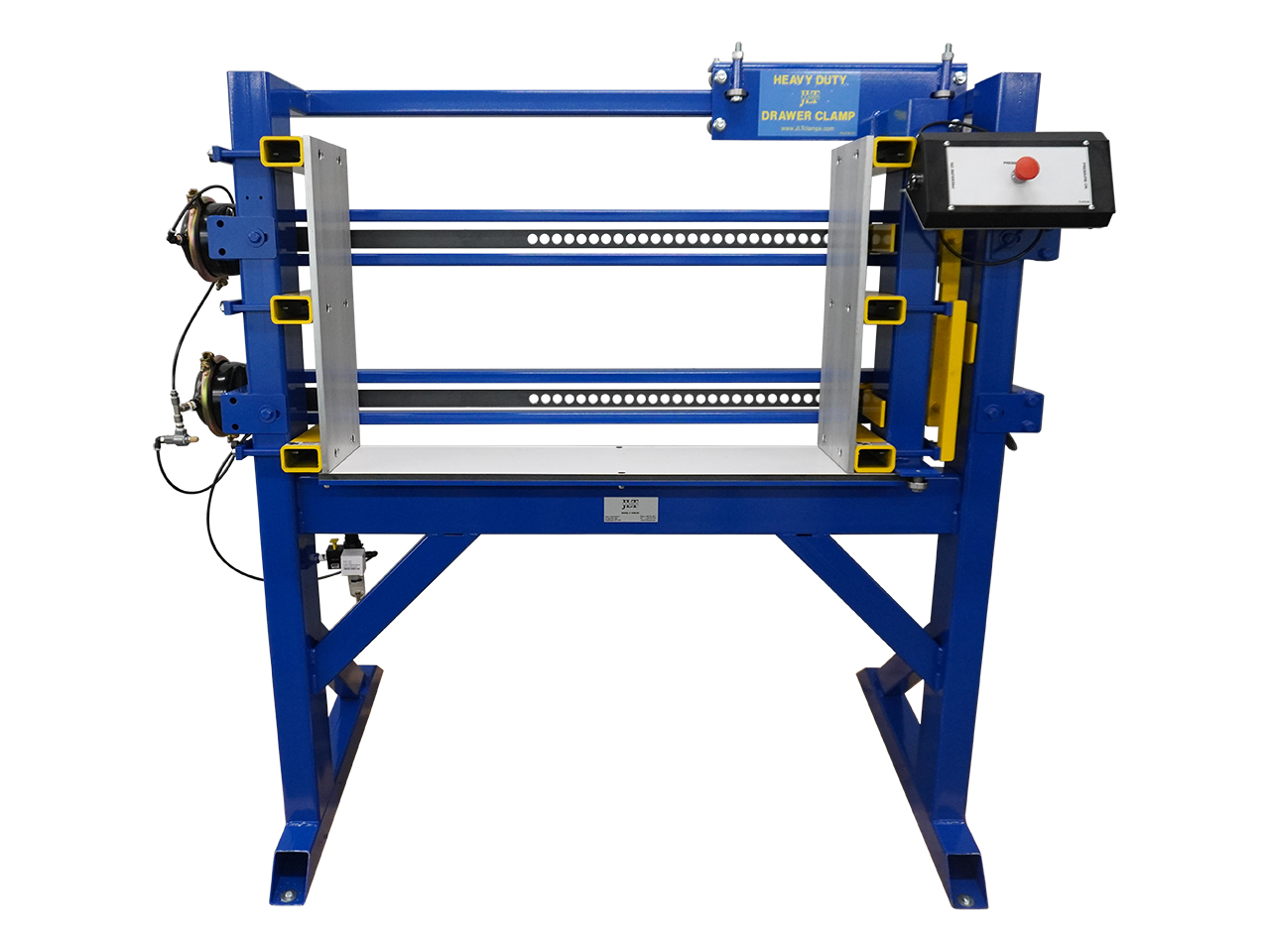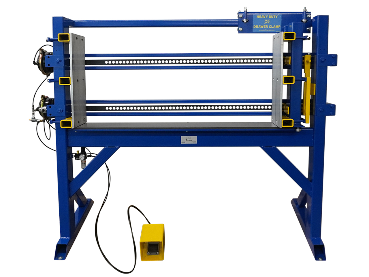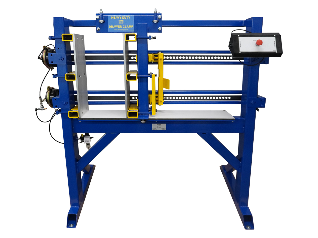 The JLT Heavy Duty Drawer Clamp is Designed to Clamp and Square all Doweled and Dovetail Drawer Construction Types. Our Design is Heavy Duty, Sturdy, Intuitive to Use, and Built to Last. It has Precise Squaring Capabilities with ample Clamping Pressure for your Boxes. A Quick Adjusting Roller Carriage Eliminated Setup Times when moving from Size to Size, and our Fast Acting Pneumatic System will Clamp and Square the Drawer in (2) Seconds.